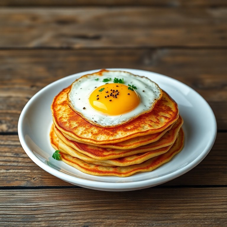 Panquecas macias feitas com farinha de mandioca, servidas com ovos estalados por cima, perfeita para um café reforçado com sabor brasileiro.