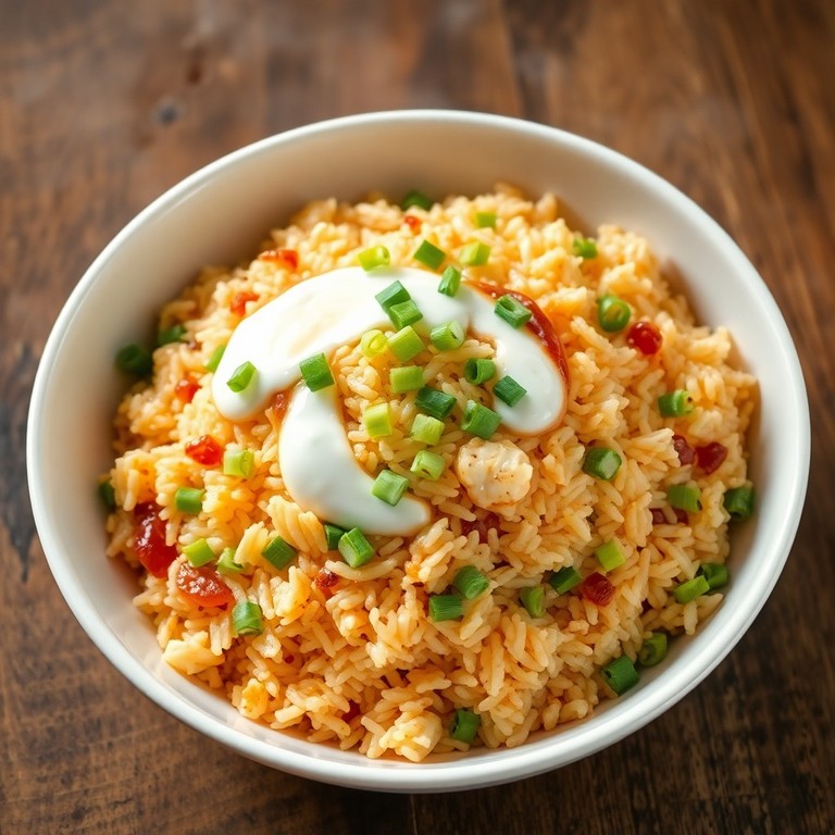 Arroz Frito à Moda Asiática é uma receita rápida e saborosa que combina arroz branco cozido com ovos mexidos, cebola, alho, shoyu e um toque de creme de leite para uma textura cremosa. Finalizado com cebolinhas frescas, é uma opção prática e deliciosa de inspiração oriental para refeições do dia a dia.