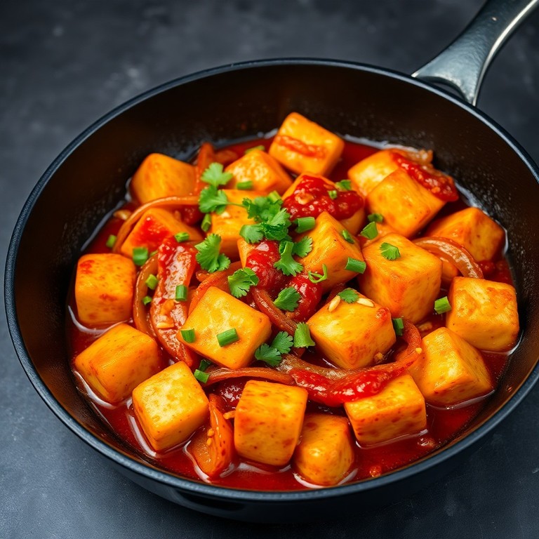 A quick and flavorful stir-fry combining paneer cubes with sautéed onion and garlic, coated in a tangy and spicy tomato ketchup glaze. This dish is perfect for a fast snack or a light meal, delivering a balance of savory, spicy, and slightly sweet flavors.
