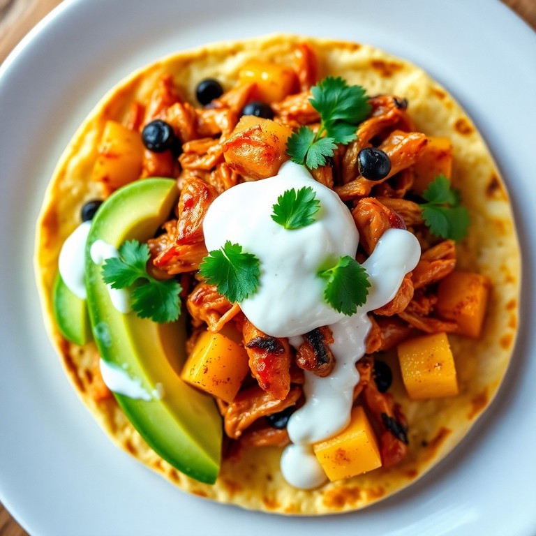 Esta versión mejorada de la tostada de pollo al chipotle incorpora una base de tostada de maíz horneada para mayor practicidad y textura crujiente, además de aguacate fresco para sumar grasas saludables, ideal para mujeres con SOP. El balance entre el pollo jugoso, la piña asada caramelizada, la crema ligera de yogur y el toque cremoso del aguacate hacen de esta tostada una opción sofisticada, deliciosa y nutritiva para una sola porción.