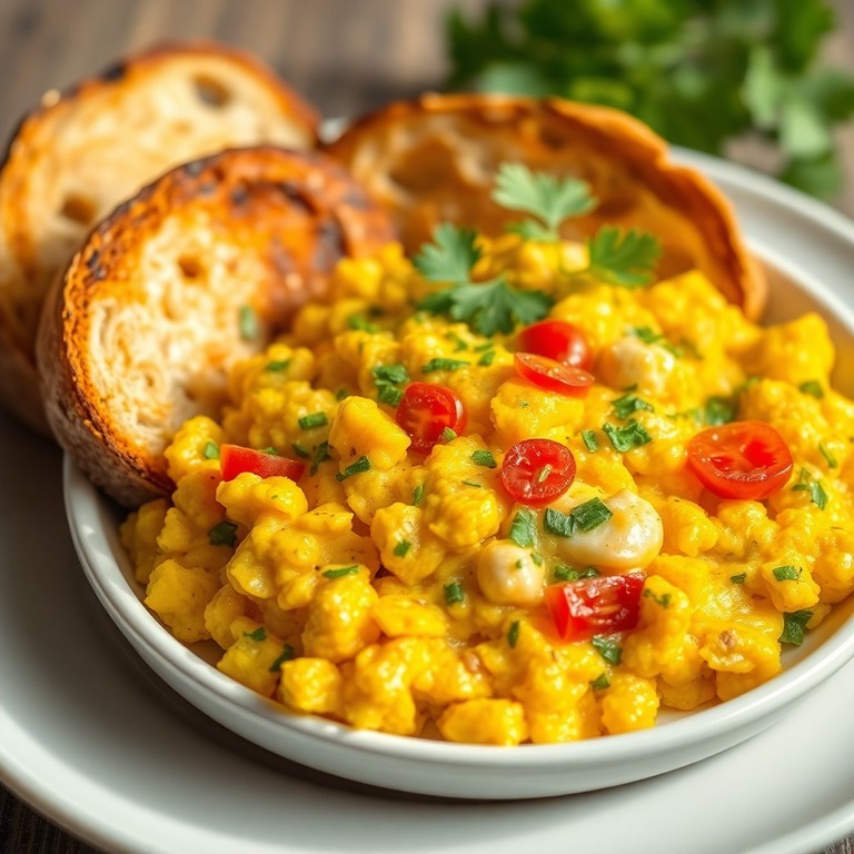A protein-packed, quick scramble combining the hearty texture of soya chunks with fluffy scrambled eggs, perfect for a nutritious start to your day. This dish brings together the nutty flavor of rehydrated soya chunks with soft, creamy scrambled eggs, enhanced by aromatic spices and fresh herbs for a wholesome breakfast.