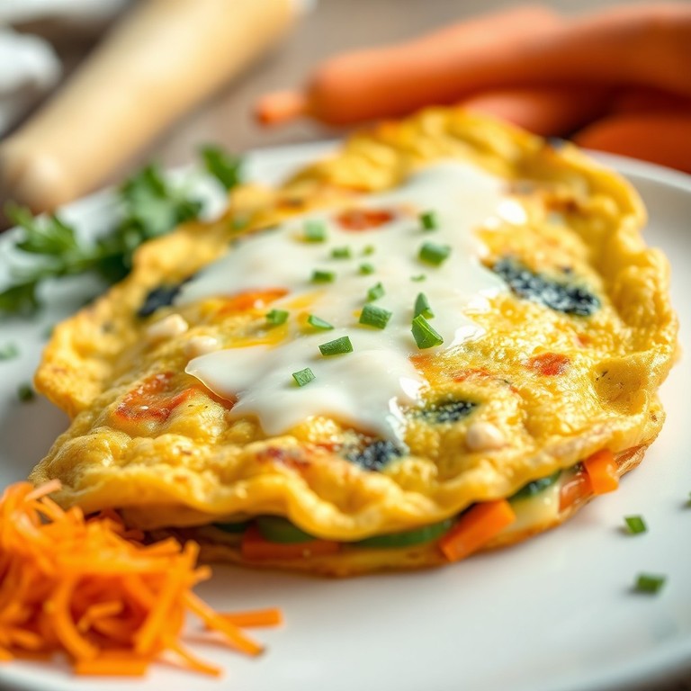 Быстрый и простой завтрак или ужин, приготовленный на сковороде с добавлением нежирного сыра. Этот омлет сочетает в себе свежесть кабачков и сладость моркови, придавая блюду легкость и питательность.