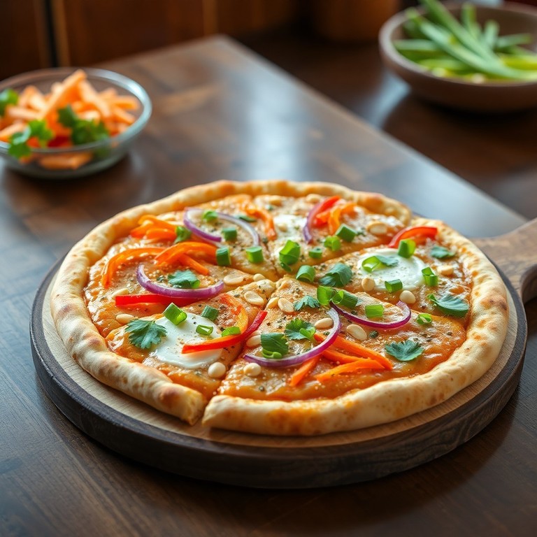 From Hepler and Schlauss 2, and Inspired by the whimsical world of Friendly’s Pizzeria and Games, this vegetarian pizza features a crunchy crust, creamy peanut sauce, and a medley of fresh vegetables. Perfect for plant-based pizza lovers, it’s a playful yet gourmet creation that pays homage to Friendly, the vegetarian animatronic. The combination of carrots, bell peppers, and scallions atop a peanutty base offers a unique, satisfying flavor and texture.