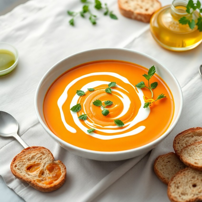 Diese leichte Möhren-Orangen Suppe vereint die natürliche Süße der Möhren mit der Frische von Orangen und einem Hauch Minze. Das Ergebnis ist eine erfrischende, proteinarme Suppe, die sich perfekt für eine gesunde Ernährung eignet. Das Minz-Topping sorgt für einen aromatischen Akzent und macht die Suppe besonders ansprechend.