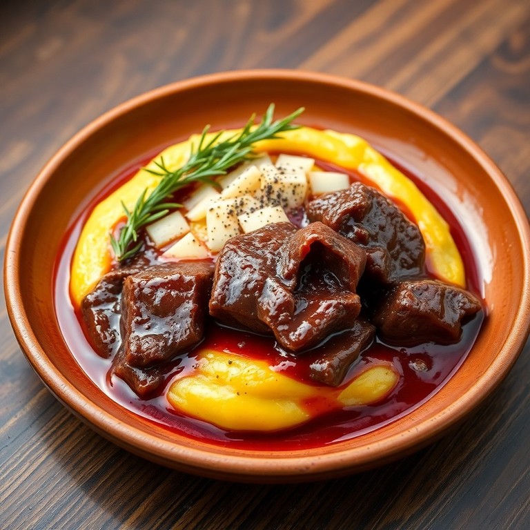 Ein traditionelles Gericht aus dem Kanton Tessin: Zart geschmortes Rindfleisch in aromatischer Rotweinsauce, serviert auf cremiger Polenta. Perfekt für ein gemütliches, herzhaftes Abendessen und ein echtes Stück Tessiner Genusskultur.