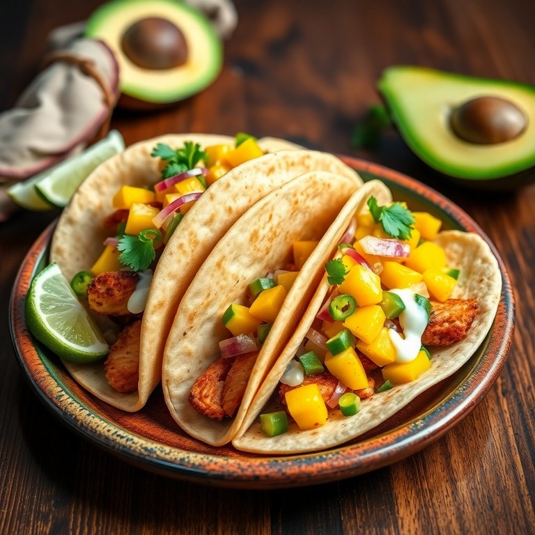 Tacos de Pollo al Estilo Mexicano con Salsa de Mango
