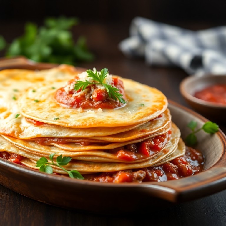 Panqueques ligeros rellenos de carne molida, cubiertos con una cremosa salsa de tomate.