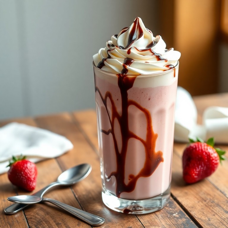 A luscious blend of rich coffee, creamy strawberry ice cream, and smooth milk, blended to creamy perfection and finished with a drizzle of chocolate syrup. This quick and indulgent treat combines the boldness of coffee with the sweet, fruity notes of strawberry ice cream, making it a delightful refreshment any time of day.