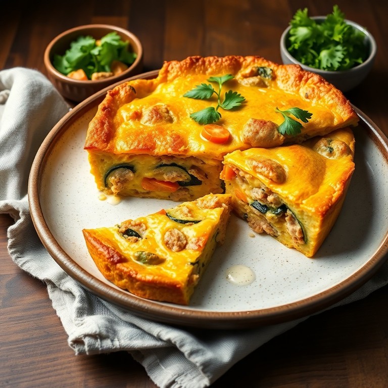 A nourishing and protein-packed baked frittata that combines tender turkey, creamy polenta, and eggs, enriched with fragrant ghee. This dish offers a comforting texture and rich flavors, perfect for a wholesome weekend brunch. Enhanced with subtle seasoning and a hint of fresh herbs, it showcases a balanced blend of savory ingredients that satisfy both palate and appetite.