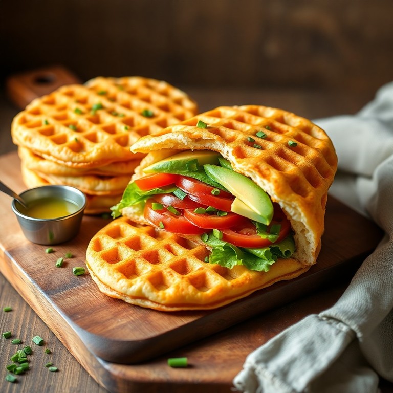 These savory vegan chaffles made with sourdough discard offer a delicious, low-effort bread substitute perfect for hearty lunchtime sandwiches. Using plant-based ingredients and a crispy cheese-free waffle base, they provide a flavorful and satisfying alternative to traditional bread, ideal for those seeking gluten-friendly or low-carb options. The recipe highlights the tangy depth of sourdough discard combined with savory herbs and chickpea flour for structure and taste.