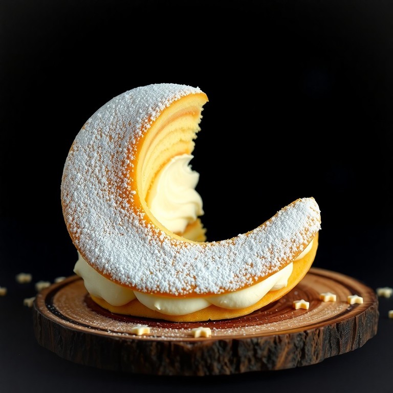 Un postre inspirado en la magia del cielo nocturno en Hogwarts, con forma de luna y capas delicadas de bizcocho suave intercaladas con una cremosa y aromática crema de vainilla. Este pastel evoca la serenidad y el misterio de la noche, ideal para cerrar una cena mágica con un toque dulce y elegante.