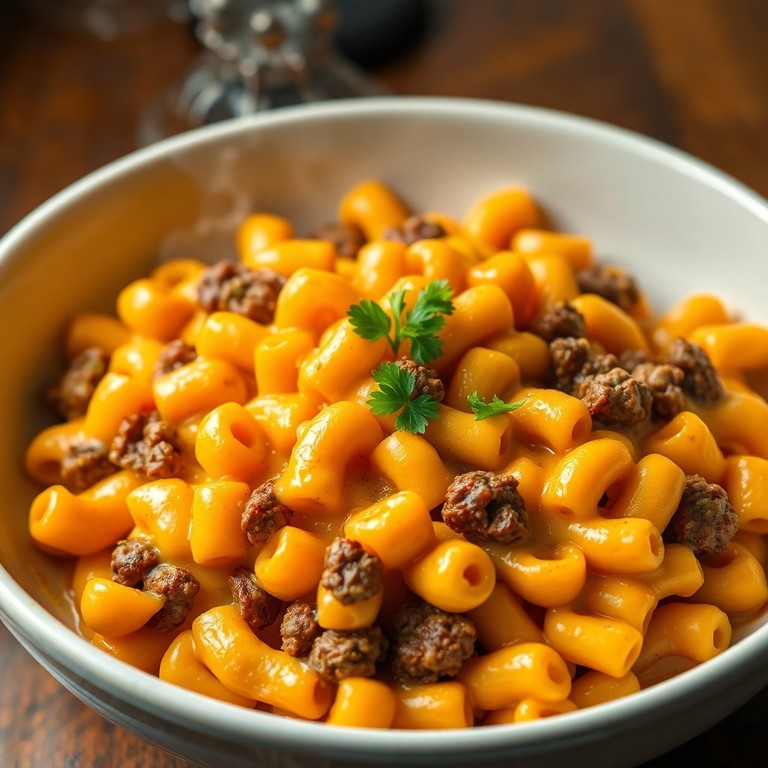 Classic Macaroni with Seasoned Beef and Melted Cheese