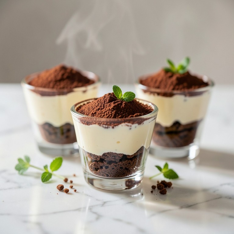 Versión individual y fácil de disfrutar de la clásica torta argentina, servida en copas. Capas alternas de galletas de chocolate humedecidas en café y una rica crema de queso y dulce de leche, terminada con cacao en polvo.