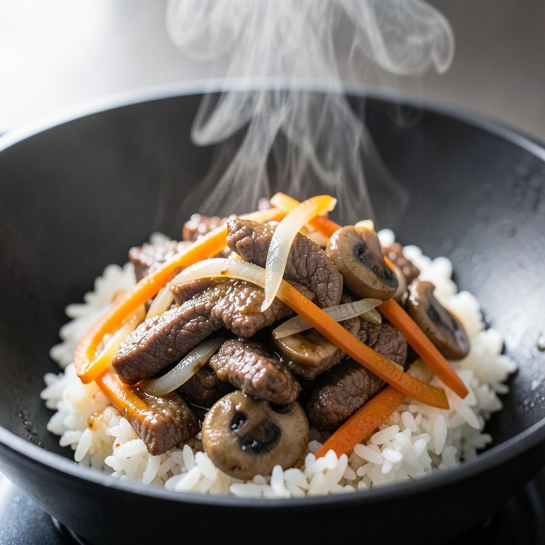 Un sauté de bœuf rapide et savoureux, tendre et juteux, cuit avec des carottes croquantes, des champignons terreux et des oignons caramélisés, le tout enrobé d'une sauce soja riche et légèrement sucrée. Idéal pour un repas de semaine complet servi avec du riz.