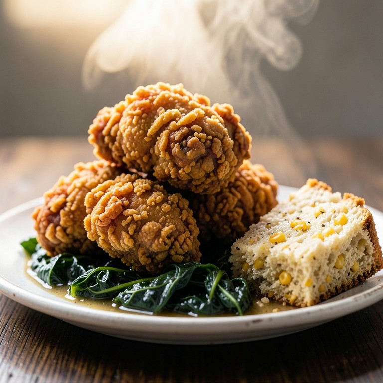 Classic Southern Fried Chicken with Buttermilk Cornbread and Collard Greens