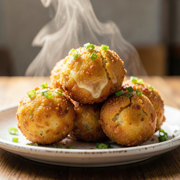 Buñuelos esponjosos y crujientes, combinando la suavidad del maíz precocido con el toque salado y profundo del queso añejo, fritos a la perfección.