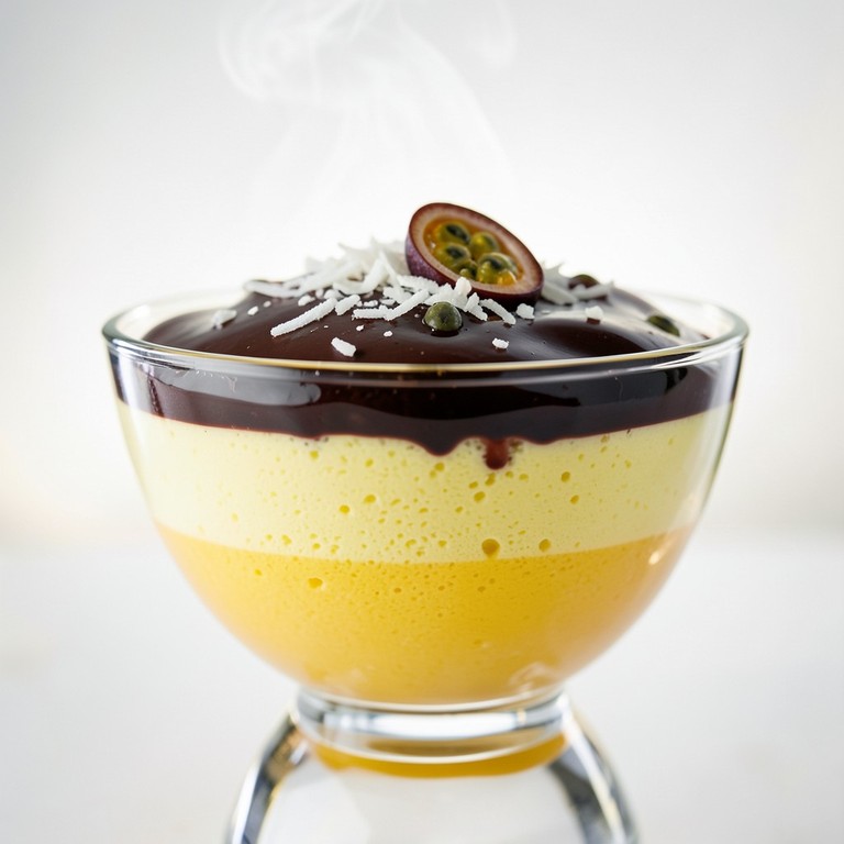 Uma sobremesa refrescante e fácil de preparar, combinando o azedinho vibrante do maracujá com uma cobertura cremosa de chocolate e um toque crocante de coco.