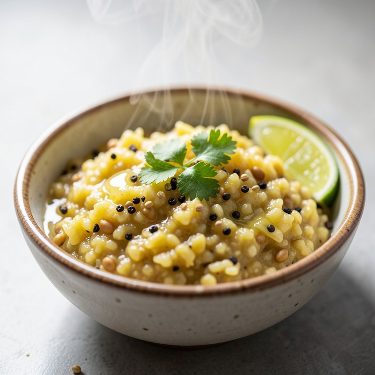 A comforting and balanced one-pot meal featuring tender basmati rice and split yellow mung dal infused with warming Ayurvedic spices for easy digestion.
