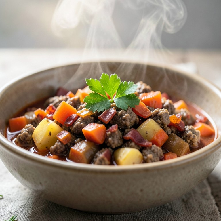 Refogado Rústico de Carne Moída, Linguiça e Legumes
