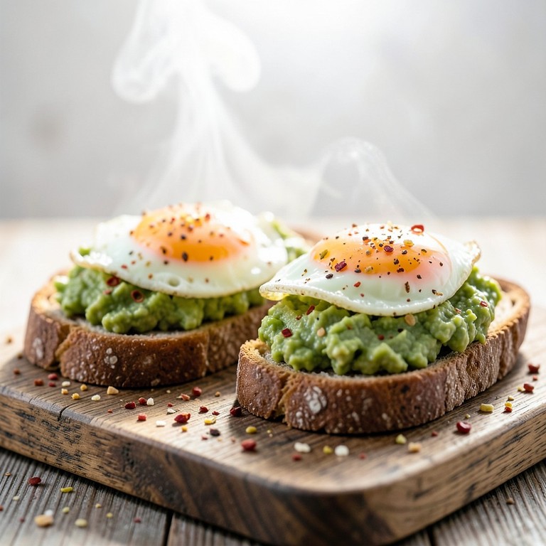 Crispy whole-grain toast topped with creamy smashed avocado, a perfectly fried egg, and savory everything bagel seasoning for a quick and healthy breakfast.