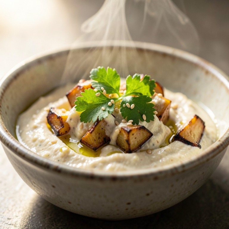 Un paté cremoso de chirivía asada lentamente hasta alcanzar su punto dulce natural, realzado con el aroma del sésamo tostado y especias suaves. Una opción saludable, baja en histamina y apta para prediabéticos.