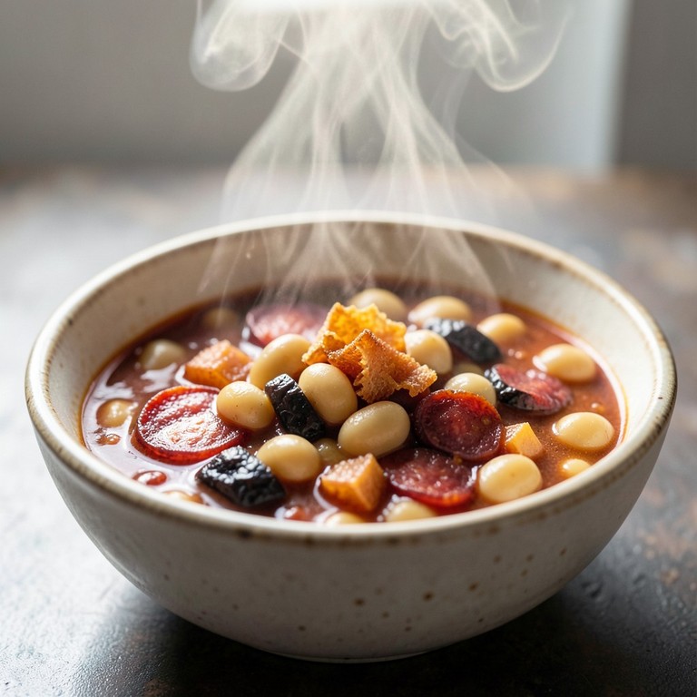 Un clásico reconfortante de la cocina riojana, este estofado de alubias blancas combina la cremosidad de las legumbres con la intensidad de sabor del chorizo, la panceta y, opcionalmente, la morcilla, todo ello en una salsa rica y aromática.