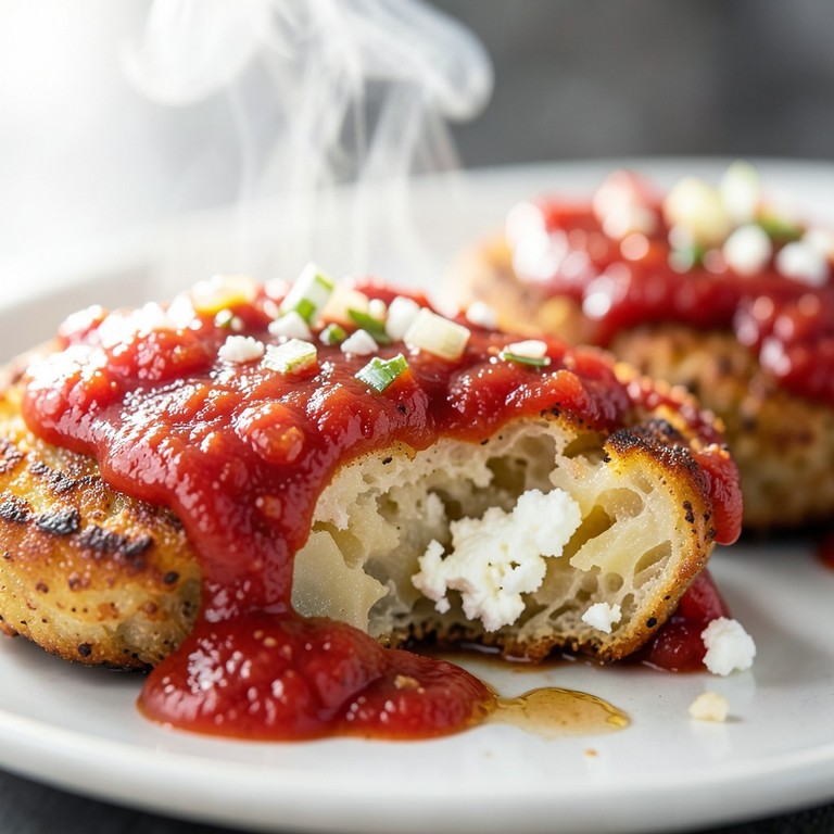 Deliciosas tortitas de papa rellenas de queso fresco, bañadas en una sabrosa salsa de tomate casera.