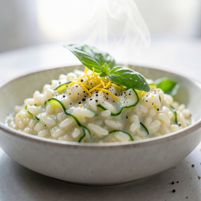 Um risoto leve e refrescante, com a acidez vibrante do limão siciliano e a suavidade da abobrinha fresca, ideal para uma refeição rápida e saudável.