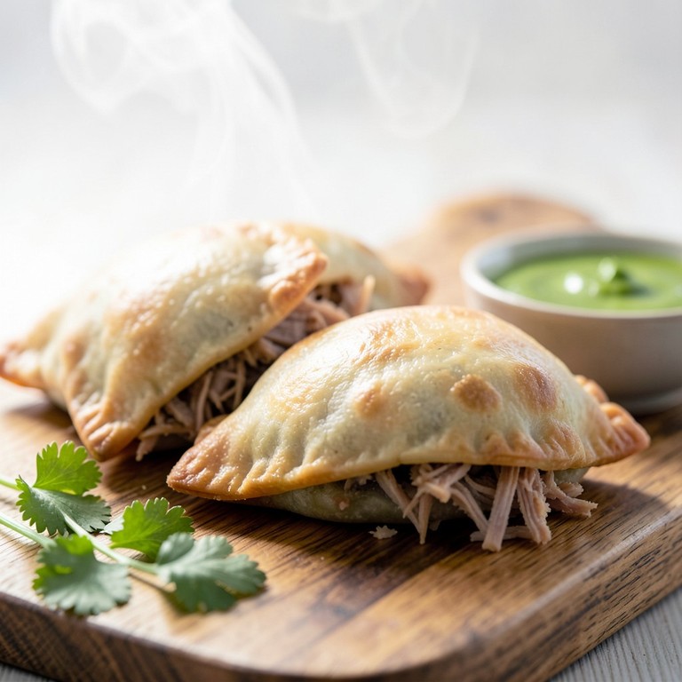 Empanadas rústicas y sustanciosas con una masa sin harina hecha de yuca, rellenas de tierno cerdo mechado. Perfectas para freír hasta quedar crujientes o para hornear hasta obtener un dorado perfecto.
