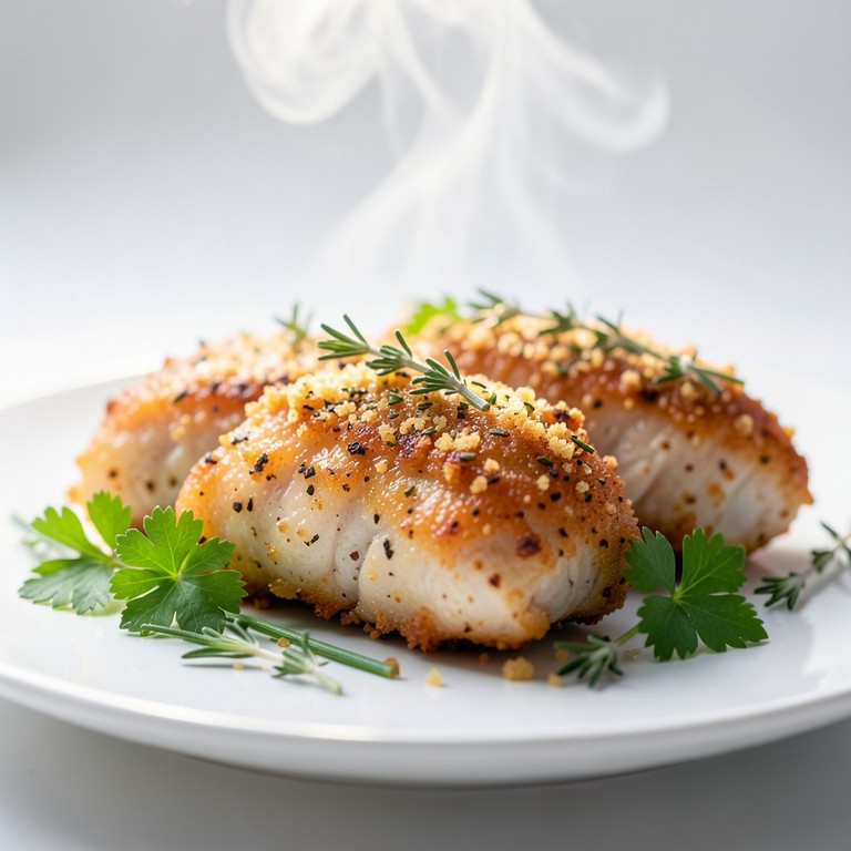 Peito de frango suculento empanado em uma crosta dourada e crocante de farinha panko, enriquecida com a frescura aromática de salsa, cebolinha e tomilho. Uma refeição deliciosa e versátil, perfeita para ser assada ou frita.