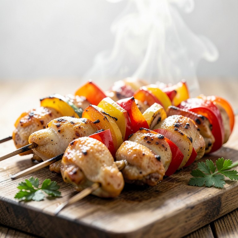 Marinated chicken and colorful bell peppers on skewers, air-fried to perfection in minutes for an easy weeknight dinner.