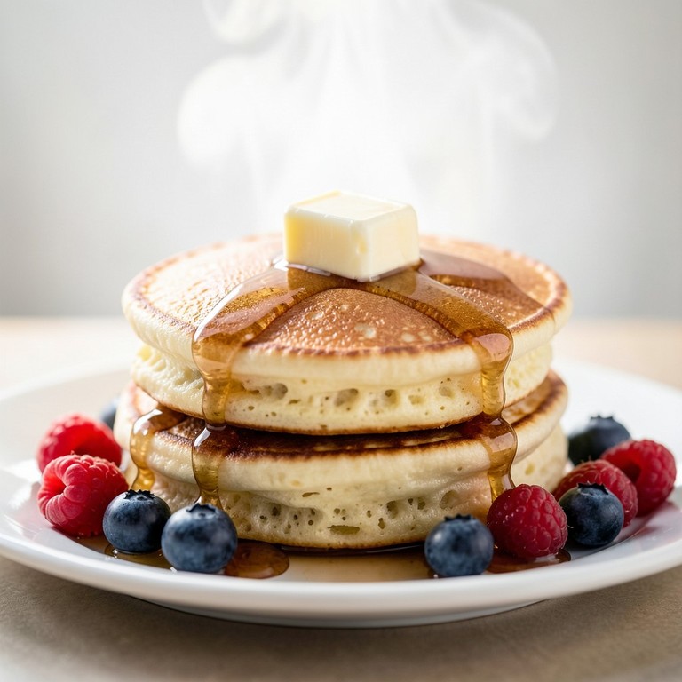 Panquecas americanas clássicas, incrivelmente fofas e aeradas, com um sabor amanteigado delicioso e uma textura macia que derrete na boca. Perfeitas para um café da manhã ou brunch especial.
