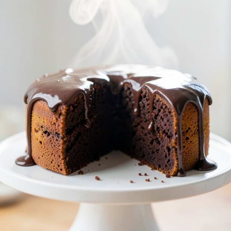 Um bolo úmido e fofo, com uma calda simples de chocolate que agrada a todos, perfeito para qualquer ocasião.