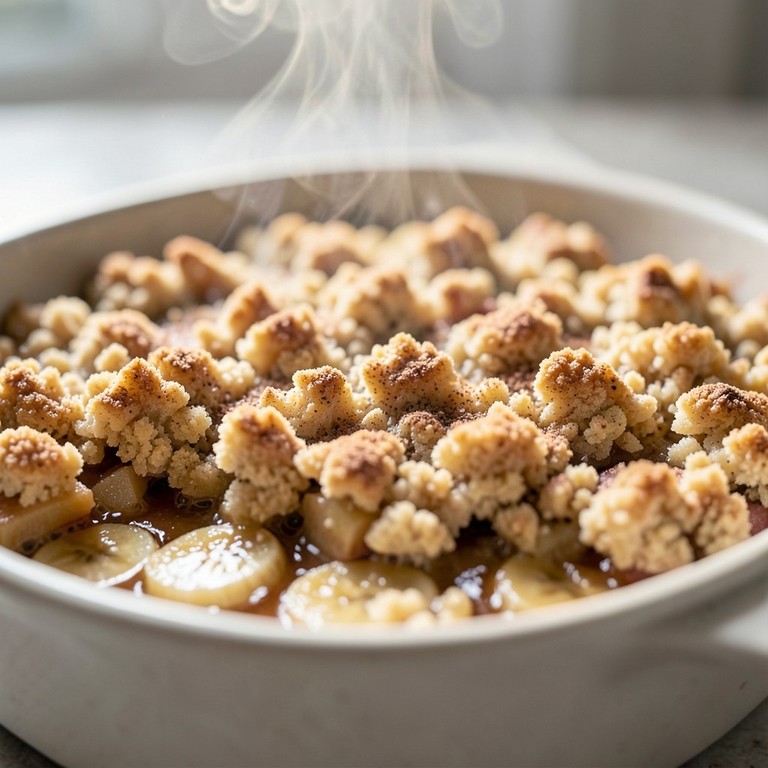 Uma sobremesa rústica e deliciosa, com bananas e maçãs macias por baixo de uma camada crocante de farofa de trigo e canela. Perfeito para um dia frio ou como um doce reconfortante.