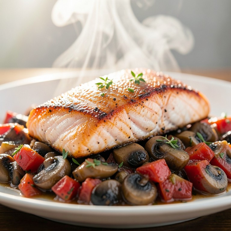 Pan-Seared Salmon with Mushroom-Tomato Ragout