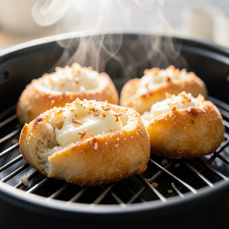 Pãezinhos macios e doces, com um toque tropical de coco, assados rapidamente na fritadeira de ar quente. Perfeitos para um lanche ou café da manhã.