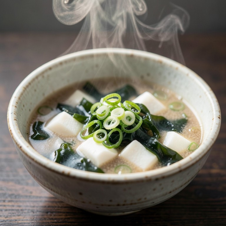 A traditional Japanese soup with silken tofu and rehydrated seaweed, prepared in minutes. This healthy and comforting dish is perfect for a quick meal.