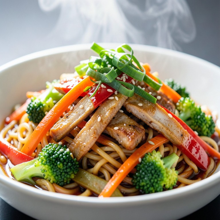 Transform instant ramen into a vibrant, healthy stir-fry with lean chicken and plenty of fresh vegetables, all coated in a savory, quick sauce.