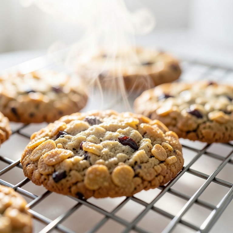 Biscoitos crocantes por fora e macios por dentro, com a textura rústica do flocão de milho e o sabor adocicado e levemente ácido da ameixa.