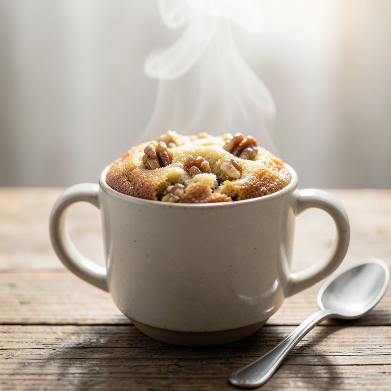 Un postre individual y express, listo en el microondas con sabor a nuez, perfecto para un antojo rápido.