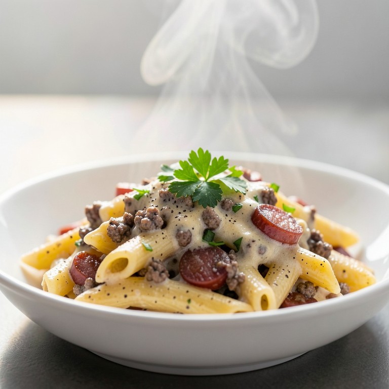 Macarrão ao Molho Cremoso de Carne e Linguiça