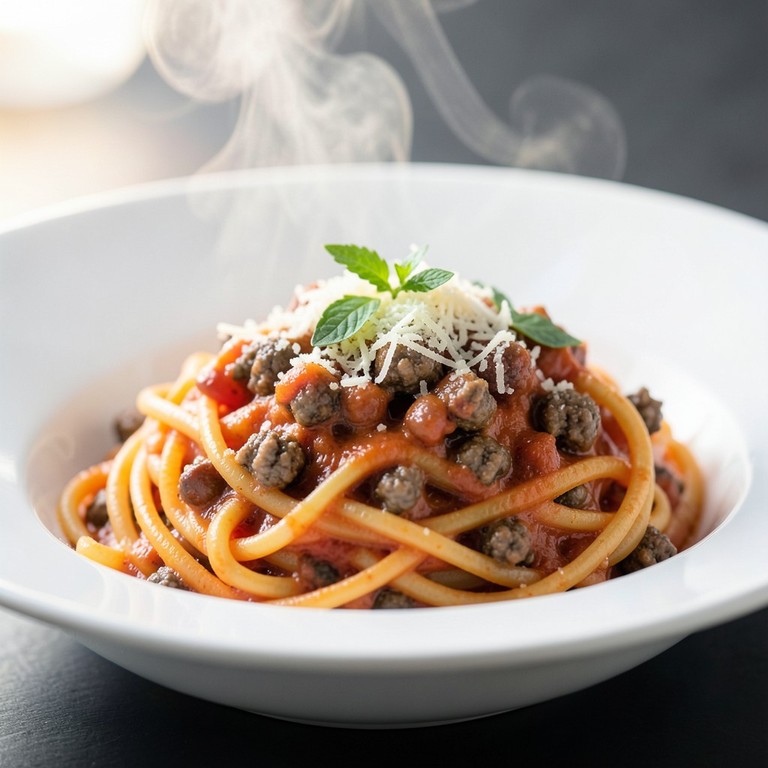 Um clássico reconfortante com molho encorpado de carne bovina e linguiça picadinha, finalizado com um toque cremoso de creme de leite.