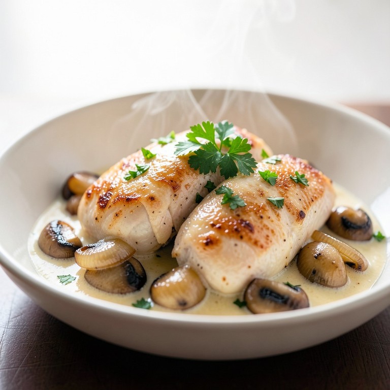 Des filets tendres mijotés dans une sauce onctueuse aux champignons et oignons caramélisés.
