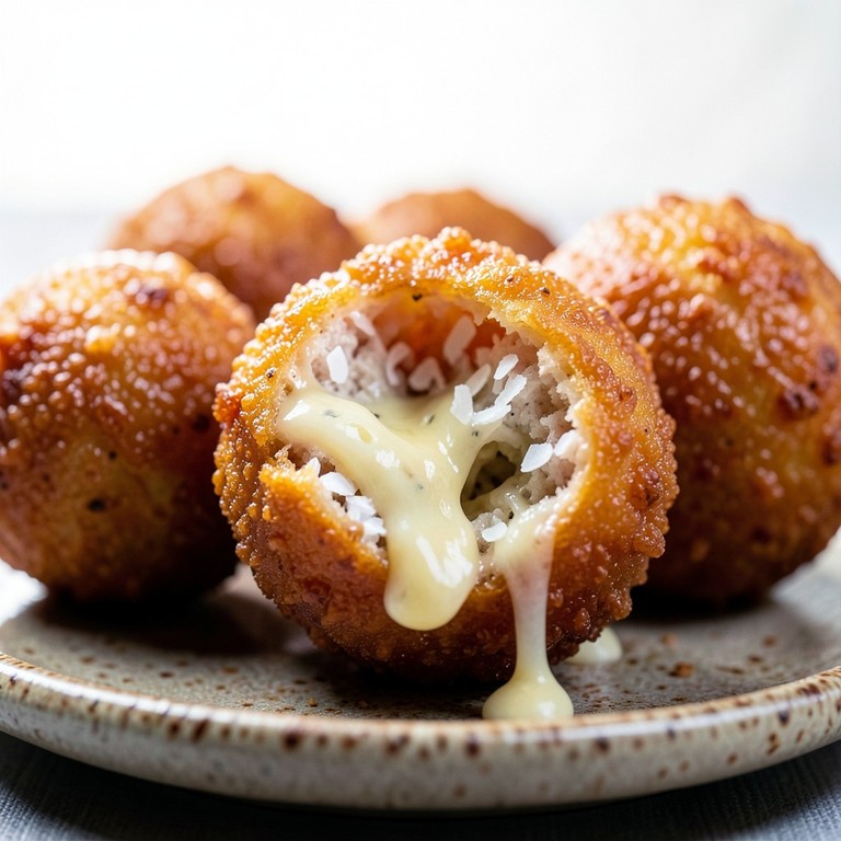 Uma massa leve e moldável, frita até ficar dourada e crocante, combinando o sabor salgado do queijo derretido com o toque adocicado e a textura do coco.