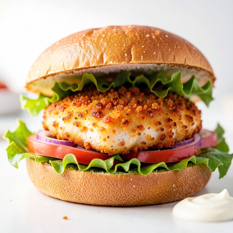 A healthy and flavorful chicken burger featuring tender poultry seasoned with aromatic garlic and smoky paprika, air-fried until perfectly golden and juicy.