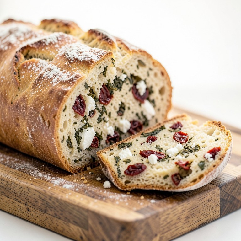 A savory, aromatic bread packed with the bold flavors of the Mediterranean, featuring a hearty blend of wheat grains, sun-dried tomatoes, and salty feta cheese.