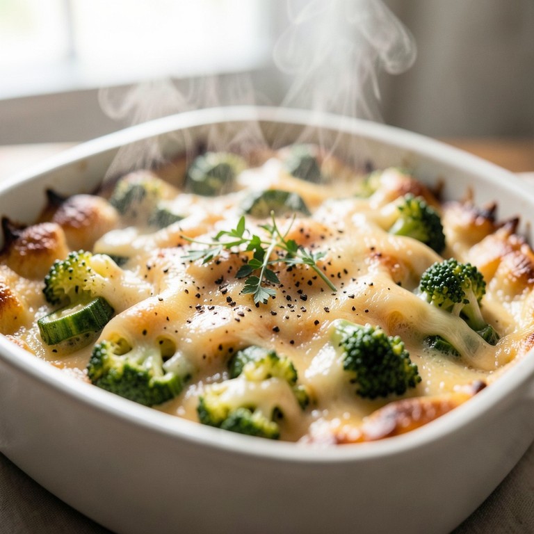 A comforting and savory gratin featuring tender roasted cauliflower and sautéed okra, bound together in a rich, velvety cream sauce infused with the smoky, roasted pepper notes of ajvar and topped with a perfectly melted cheese crust.