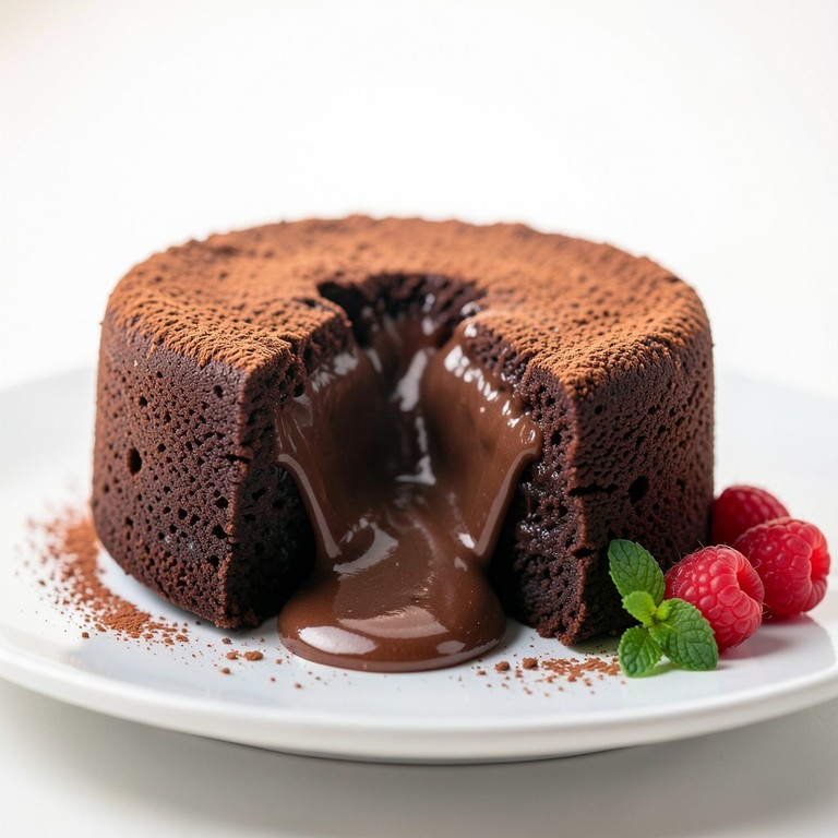 A classic dessert featuring a rich, firm exterior with a decadent, gooey liquid chocolate center.