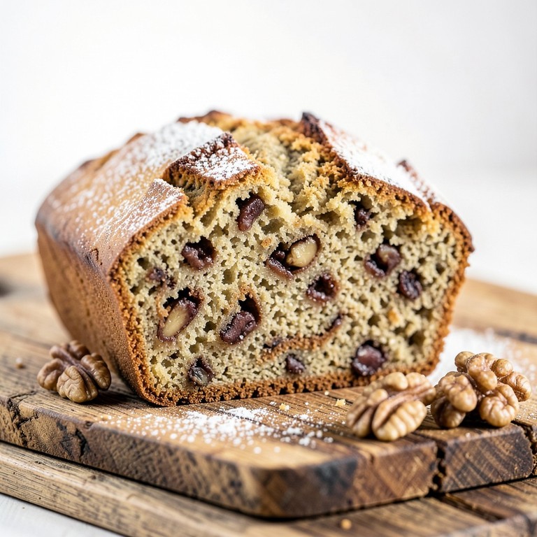 An aromatic and moist banana bread enhanced with the earthy crunch of toasted walnuts and the comforting warmth of ground cinnamon.