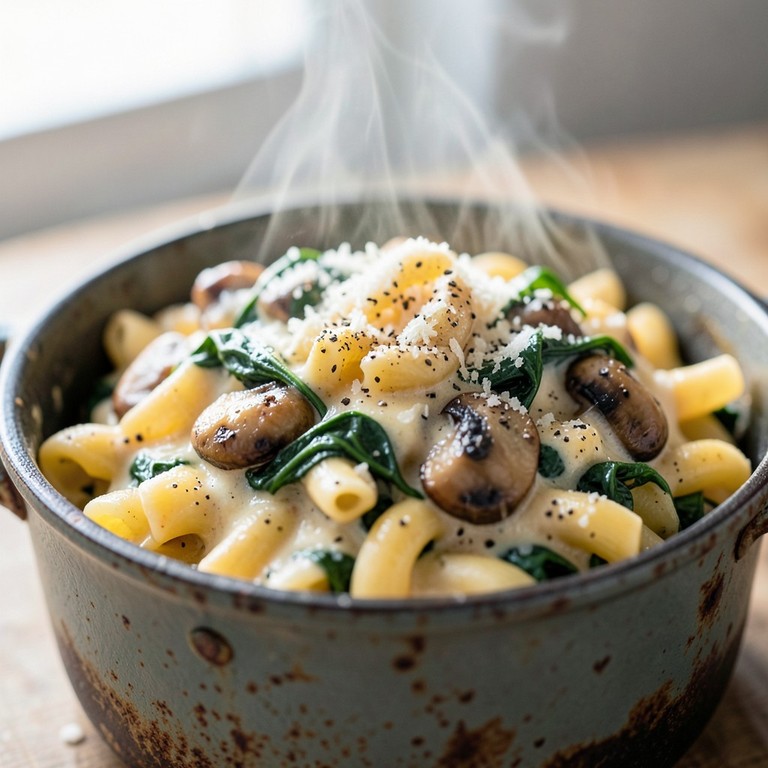 One-Pot Creamy Mushroom and Spinach Macaroni
